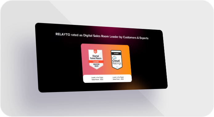 RELAYTO rated as Digital Sales Room Leader by Customers & Experts Leader in the Digital Sales Room - 2023 Leader in the Digital Sales Room - 2023