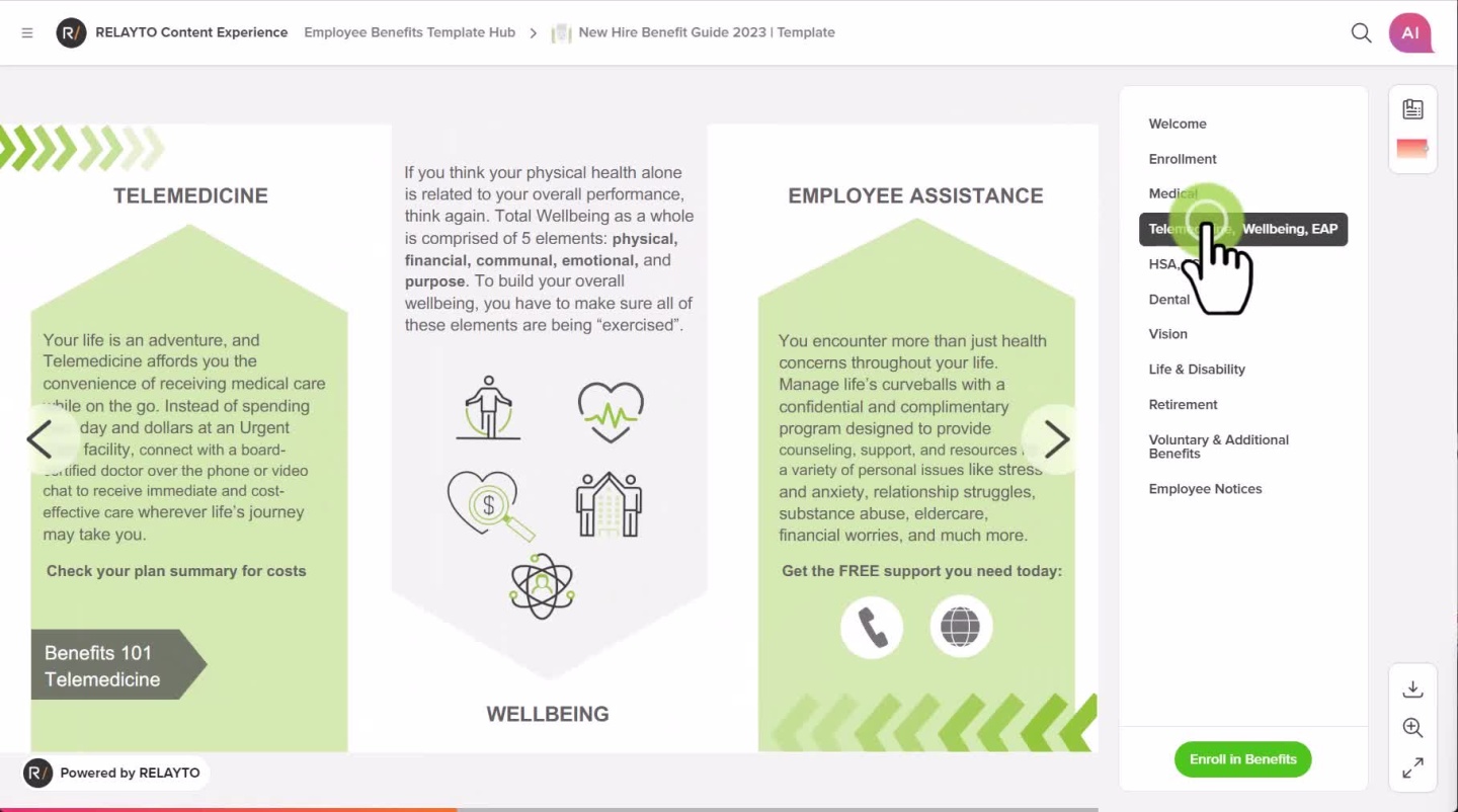 Microsite Your Digital Benefits Concierge Tailored Benefits Portal A RELAYTO microsite acts as a central hub for all your benefits communications, providing employees with a one-stop digital space for comprehensive plan information, wellness initiatives, and essential documents.