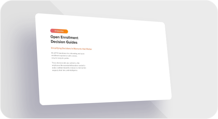 Onboarding Open Enrollment Decision Guides Simplifying Decisions in Moments that Matter RELAYTO transforms the onboarding and open enrollment experience with concise, easy-to-navigate guides. These decision aids are crafted to offer employees the essential information needed to make confident benefits choices in a format that respects their time and intelligence.