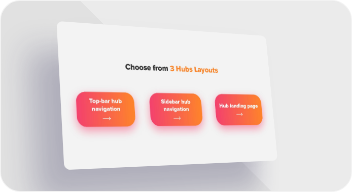 Choose from 3 Hubs Layouts Top-bar hub Sidebar hub Hub landing page navigation navigation ⟶ ⟶ ⟶