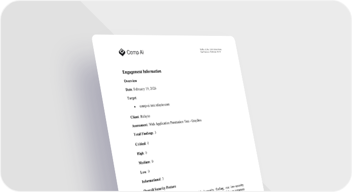 Bubba AI, Inc. 2261 Market Street, San Francisco, California, 94114 Engagement Information Overview Date : February 19, 2026 Target :  comp-ai.test.relayto.com Client : Relayto Assessment : Web Application Penetration Test - GrayBox Total Findings : 3 Critical : 0 High : 0 Medium : 0 Low : 0 Informational : 3 Overall Security Posture The security assessment identified one critical-severity finding, one low-severity finding, and three informational findings. While most components of the environment appear well-configured, the presence of a critical vulnerability required immediate attention. The previously identified critical finding involves unauthenticated API endpoints that expose sensitive user data, including personally identifiable information (PII) and administrative account details, and allow cross-tenant access. This issue could enable attackers to retrieve sensitive information without authentication, increasing the risk of data leakage, targeted attacks, and potential regulatory or reputational impact. The issue has been remediated, with corrective measures applied to the affected components . The low-severity finding has been fully remediated . While t he informational findings do not pose immediate risk but provide recommendations to further strengthen the overall security posture. Overall, the organization ’ s security posture has significantly improved following the remediation of the critical finding with only informational findings remaining.