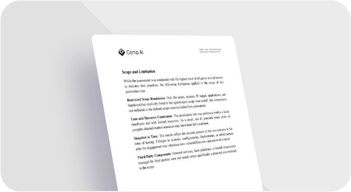 Bubba AI, Inc. 2261 Market Street, San Francisco, California, 94114 Scope and L imitation While the assessment was conducted with the highest level of diligence and adherence to industry best practices, the following limitations applied to the scope of this penetration test: Restricted Scope Boundaries : Only the assets, systems, IP ranges, applications, and functionalities explicitly listed in the agreed ‑ upon scope were tested. Any components not included in the defined scope were excluded from assessment. Time and Resource Constraints : The penetration test was performed within a fixed timeframe and with limited resources. As a result, not all potential attack paths or complex chained exploit scenarios may have been fully explored. Snapshot in Time : The results reflect the security posture of the environment at the time of testing. Changes to systems, configurations, deployments, or infrastructure after the engagement may introduce new vulnerabilities not captured in this report. Third-Party Components : External services, SaaS platforms, or hosted components managed by third parties were not tested unless specifically authorized and included in the scope.