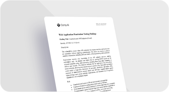 Bubba AI, Inc. 2261 Market Street, San Francisco, California, 94114 Web Application Penetration Testing Findings Finding Title: Unauthenticated API Endpoints (Closed) Severity: (CVSS3.1): 3 .9 ( Low ) Description: The vulnerability occurs when API endpoints that expose sensitive application data are accessible without requiring authentication. This allows an attacker to retrieve sensitive information, including full user details, without possessing valid credentials. Exploitation requires only knowledge of the API endpoint structure, making exploitation easy. An attacker can exploit this by sending HTTP requests to the exposed endpoints using valid usernames, including those from other companies, to retrieve user records. This behavior indicates that the application does not enforce tenant isolation, allowing cross-tenant access to sensitive data. Successful exploitation could result in large-scale disclosure of personally identifiable information (PII), exposure of administrative account details and API keys, targeted attacks against high-privilege users across multiple organizations, and increased risk of regulatory, reputational, and compliance impact. Risk: Unauthenticated access to PII and administrative account data . Exposure of sensitive configuration details such as API keys . Cross-tenant access enables attackers to retrieve data from other companies . Targeted attacks against high-privilege users across multiple organizations . Increased risk of phishing, credential stuffing, and social engineering . Potential regulatory and compliance impact due to PII disclosure.