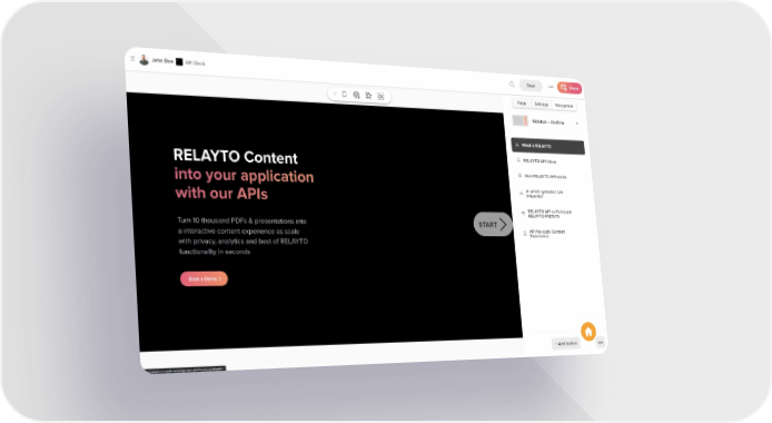 RELAYTO Product Demo Tour Page 13 Page 15Video Player is loading.Play VideoPlaySkip BackwardSkip ForwardMuteCurrent Time 0:00/Duration -:-Loaded: 0%0:00Stream Type LIVESeek to live, currently behind liveLIVERemaining Time --:- 1xPlayback RateChaptersChaptersDescriptionsdescriptions off, selectedCaptionscaptions settings, opens captions settings dialogcaptions off, selectedAudio TrackPicture-in-PictureFullscreenThis is a modal window.The media could not be loaded, either because the server or network failed or because the format is not supported.Beginning of dialog window. Escape will cancel and close the window.TextColorWhiteBlackRedGreenBlueYellowMagentaCyanOpacityOpaqueSemi-TransparentText BackgroundColorBlackWhiteRedGreenBlueYellowMagentaCyanOpacityOpaqueSemi-TransparentTransparentCaption Area BackgroundColorBlackWhiteRedGreenBlueYellowMagentaCyanOpacityTransparentSemi-TransparentOpaqueFont Size50%75%100%125%150%175%200%300%400%Text Edge StyleNoneRaisedDepressedUniformDrop shadowFont FamilyProportional Sans-SerifMonospace Sans-SerifProportional SerifMonospace SerifCasualScriptSmall CapsResetDoneClose Modal DialogEnd of dialog window.