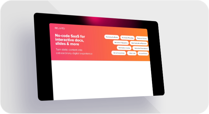 Brochures & eBooks Scrollable Microsites Resource libraries No-code SaaS for interactive docs, Interactive Infographics Web Publications/Flipbooks slides & more Multimedia Libraries Interactive Presentations Turn static content into Interactive journeys Video hubs Account Portals extraordinary digital experience