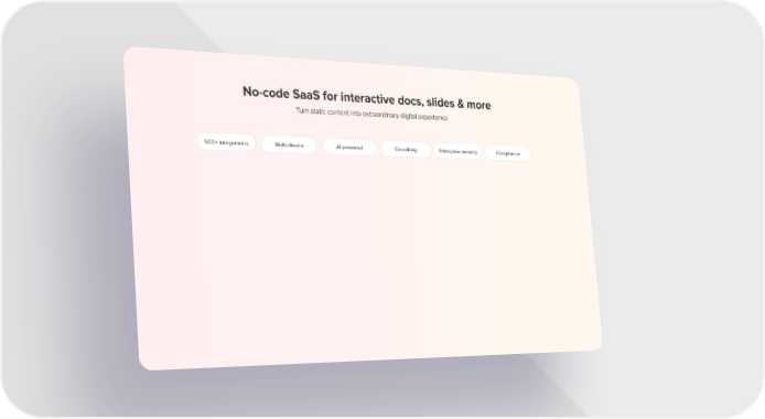 No-code SaaS for interactive docs, slides & more Turn static content into extraordinary digital experience 500+ integrations Multi-device AI-powered Co-editing Enterprise security Compliance