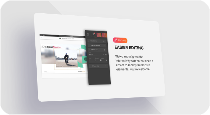 EDITING EDITING EASIER EDITING We’ve redesigned the interactivity sidebar to make it easier to modify interactive elements. You’re welcome.
