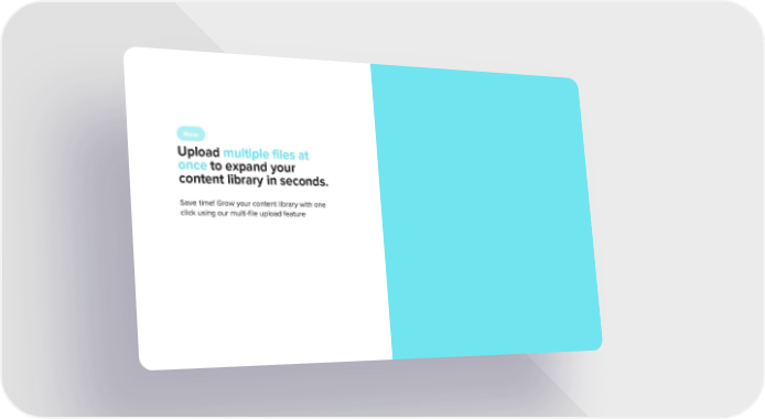 New Upload multiple files at once to expand your content library in seconds. Save time! Grow your content library with one click using our multi-file upload feature