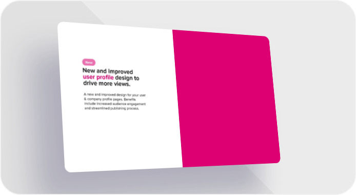 New New and improved user profile design to drive more views. A new and improved design for your user & company profile pages. Benefits include increased audience engagement and streamlined publishing process.