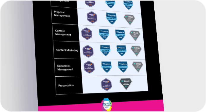 Content Marketing Platforms Sales Enablement Sales Content Management Proposal Management Content Management Content Marketing Document Management Presentation RELAYTO AI has been selected as a winner in the MarTech Breakthrough Awards program, taking home the “Best MarTech No-Code Solution” award Explore the categories in which RELAYTO was highlighted on www.gartner.com/en