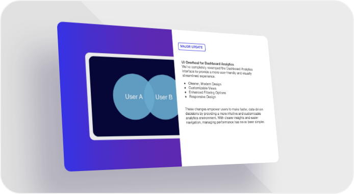 MAJOR UPDATE UI Overhaul for Dashboard Analytics We’ve completely revamped the Dashboard Analytics interface to provide a more user-friendly and visually streamlined experience. ● Cleaner, Modern Design ● Customizable Views ● Enhanced Filtering Options ● Responsive Design These changes empower users to make faster, data-driven decisions by providing a more intuitive and customizable analytics environment. With clearer insights and easier navigation, managing performance has never been simpler.
