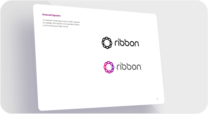 Ribbon Brand Book Page 14 Page 161 5 Horizontal Signature The horizontal Ribbon logo is made up of the logomark and logotype. Th is logo should be used when there is more horizontal space than vertical.