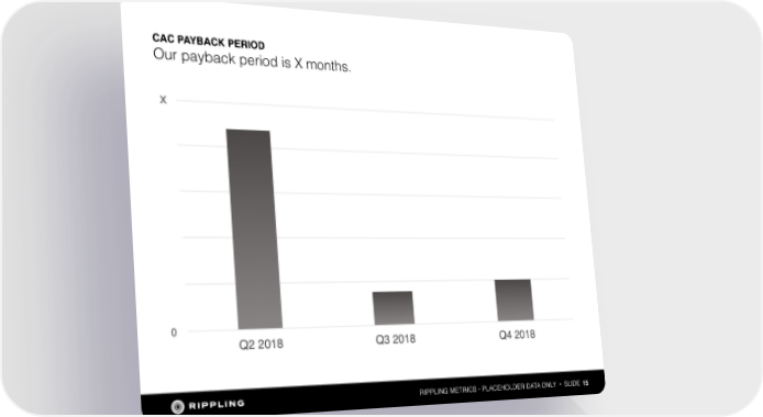 Our payback period is X months. RIPPLING METRICS - PLACEHOLDER DATA ONLY • SLIDE 15