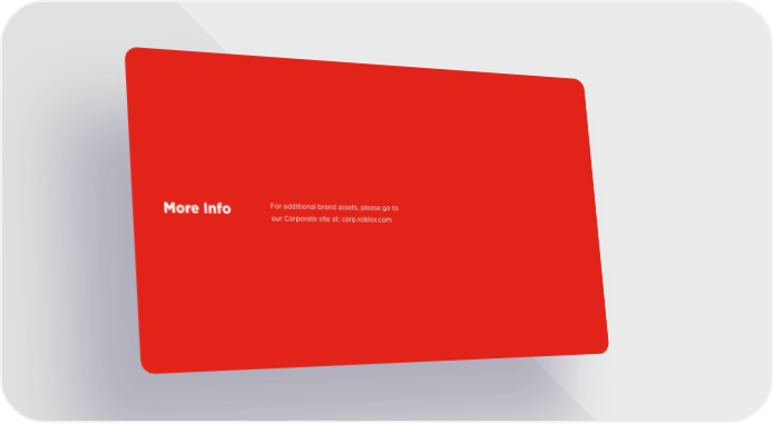 More Info For additional brand assets, please go to our Corporate site at: corp.roblox.com Roblox Brand Book Page 8