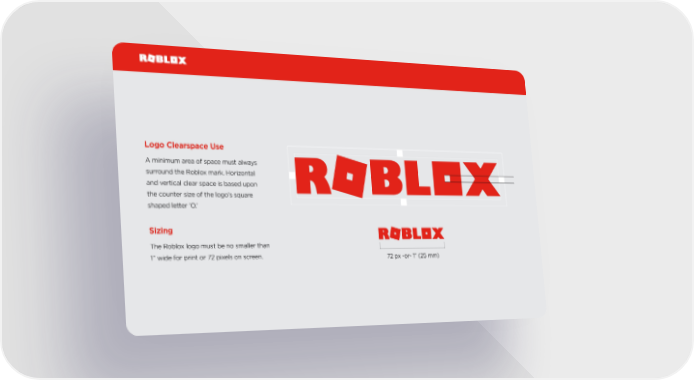 Logo Clearspace Use A minimum area of space must always surround the Roblox mark. Horizontal and vertical clear space is based upon the counter size of the logo’s square shaped letter ‘O.’ Sizing The Roblox logo must be no smaller than 1” wide for print or 72 pixels on screen. 72 px -or- 1” (25 mm)