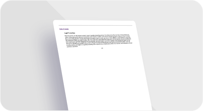Table of Contents Legal Proceedings From time to time, we may become involved in legal or regulatory proceedings arising in the ordinary course of our business, including personal injury claims, intellectual property claims and commercial contract disputes. In addition, with respect to employees and others, we face and could in the future face a wide variety of claims, including discrimination (for example, based on gender, age, race or religious affiliation), sexual harassment, privacy, labor and employment, ERISA and disability claims. Often these cases raise complex factual and legal issues, which are subject to risks and uncertainties and which could require significant management time and corporate resources to defend, could result in significant media coverage and negative publicity, and could be harmful to our reputation and our brand. Although the outcome of these and other claims cannot be predicted with certainty, we are not currently a party to any litigation or regulatory proceeding that we expect to have a material adverse effect on our business, results of operations, financial condition or cash flows. 171