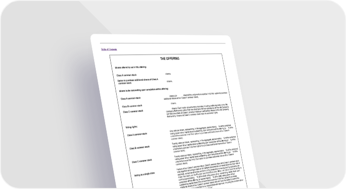 Table of Contents THE OFFERING Shares offered by us in this offering: Class A common stock shares. Option to purchase additional shares of Class A common stock shares. Shares to be outstanding upon completion of this offering: Class A common stock shares (or shares if the underwriters exercise in full their option to purchase additional shares of our Class A common stock). Class B common stock shares. Class C common stock shares. Each holder of partnership interests (including profits interests) in the We Company Partnership (other than the direct and indirect subsidiaries of The We Company) will hold one share of Class C common stock per partnership interest in the We Company Partnership. Shares of Class C common stock have no economic rights. Voting rights: Class A common stock One vote per share, representing, in the aggregate, approximately % of the combined voting power of our capital stock outstanding upon completion of this offering (or % if the underwriters exercise in full their option to purchase additional shares of our Class A common stock). Class B common stock Twenty votes per share, representing, in the aggregate, approximately % of the combined voting power of our capital stock outstanding upon completion of this offering (or % if the underwriters exercise in full their option to purchase additional shares of our Class A common stock). Class C common stock Twenty votes per share, representing, in the aggregate, approximately % of the combined voting power of our capital stock outstanding upon completion of this offering (or % if the underwriters exercise in full their option to purchase additional shares of our Class A common stock). Voting as a single class Holders of our Class A common stock, Class B common stock and Class C common stock vote together as a single class on all matters presented to our stockholders for their vote or approval, except as otherwise set forth in this prospectus or as required by applicable law. Adam Neumann, our Co-Founder and Chief Executive Officer, will hold or have the ability to control approximately % of the total voting power of our outstanding capital stock upon completion of this offering (or approximately % of the total voting power of our outstanding capital stock if the underwriters exercise in full their option to purchase additional shares of our Class A common stock) and will have the ability to control the outcome of matters submitted to our stockholders for approval, including the election of our directors. See “Description of Capital Stock”. Conversion and related rights: Class A common stock Our Class A common stock is not convertible into any other class of shares. Class B common stock Our Class B common stock is convertible into shares of our Class A common stock on a one-for-one basis at the option of the holder. In addition, each share of Class B common stock will convert automatically 18