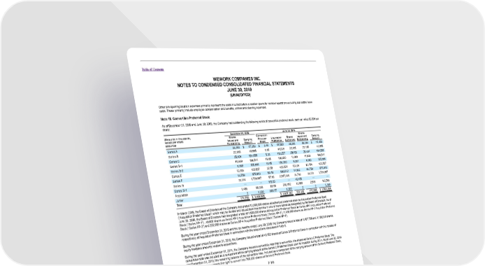 Table of Contents WEWORK COMPANIES INC. NOTES TO CONDENSED CONSOLIDATED FINANCIAL STATEMENTS JUNE 30, 2019 (UNAUDITED) Other pre-opening location expenses primarily represent the costs incurred before a location opens for member operations excluding real estate lease costs. These primarily include employee compensation and benefits, utilities and cleaning expenses. Note 18. Convertible Preferred Stock As of December 31, 2018 and June 30, 2019, the Company had outstanding the following series of convertible preferred stock, each par value $0.001 per share: December 31, 2018 June 30, 2019 (Amounts in thousands, Shares Conversion Shares except per share Issued and Carrying Price per Liquidation Shares Issued and Carrying amounts) Outstanding Amount Share Preference Authorized Outstanding Amount Series A 38,393 $ 17,350 $ 0.46 $ 17,500 38,393 38,393 $ 17,350 Series B 22,165 40,995 1.85 41,039 22,165 22,165 40,995 Series C 28,404 154,699 5.36 152,227 29,189 28,404 154,699 Series D-1 11,939 198,541 16.65 198,800 11,939 11,939 198,541 Series D-2 9,380 155,996 16.65 156,200 9,381 9,380 155,996 Series E 13,194 433,507 32.89 433,934 13,194 13,194 433,507 Series F 13,759 675,913 50.19 690,612 14,942 13,759 675,913 Series G 33,114 1,729,997 57.90 2,017,338 34,742 33,114 1,729,997 Series G-1 — — 110.00 — 45,455 — — Acquisition 1,408 90,398 86.69 218,152 13,900 2,516 182,788 Junior 2 1,300 866.67 1,300 2 2 1,300 Total 171,758 $ 3,498,696 $ 3,927,102 233,302 172,866 $ 3,591,086 In March 2018, the Board of Directors of the Company designated 13,900,000 shares of authorized preferred stock as Acquisition Preferred Stock (“Acquisition Preferred Stock”) which may be divided and issued from time to time in one or more series as designated by the Board of Directors. As of June 30, 2019, the Board of Directors had designated a total of 1,600,000 shares of Acquisition Preferred Stock as Series AP-1 Acquisition Preferred Stock (“Series AP-1”) , 40,000 shares as Series AP-2 Acquisition Preferred Stock (“Series AP-2”), 1,100,000 shares as Series AP-3 Acquisition Preferred Stock (“Series AP-3”) and 200,000 shares as Series AP-4 Acquisition Preferred Stock (“Series AP-4”). During the year ended December 31, 2018 and the six months ended June 30, 2019, the Company issued a total of 1,407,796 and 1,108,816 shares, respectively, of Acquisition Preferred Stock in connection with the acquisitions discussed in Note 8. During the year ended December 31, 2018, the Company issued a total of 49,152 shares of Series G Preferred Stock in connection with the release of equity holdback amounts related to acquisitions. During the year ended December 31, 2014, the Company issued a convertible note that is convertible into shares of Series C Preferred Stock. The convertible note was included as a component of the carrying amount of the Series C Preferred Stock upon its inception during 2014. As of June 30, 2019 and December 31, 2018, the remaining balance of the convertible note, included as a component of the carrying amount of the Series C Preferred Stock, is $4.2 million and represents the right to convert into 785,302 shares of Series C Preferred Stock. F-113