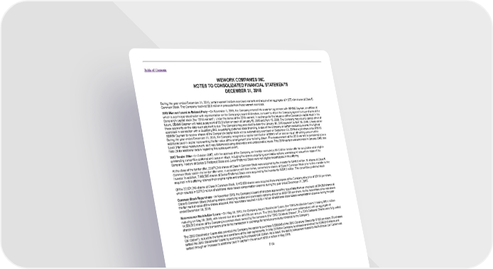 Table of Contents WEWORK COMPANIES INC. NOTES TO CONSOLIDATED FINANCIAL STATEMENTS DECEMBER 31, 2018 During the year ended December 31, 2018, certain warrant holders exercised warrants and acquired an aggregate of 1,577,434 shares of Class B Common Stock. The Company received $0.6 million in proceeds from these warrant exercises. 2018 Warrant Issued to Related Party—On November 1, 2018, the Company entered into a warrant agreement with SBWW Cayman, an affiliate of which is a principal stockholder with representation on the Company’s board of directors, pursuant to which the Company agreed to issue shares of the Company’s capital stock (the “2018 warrant”). Under the terms of the 2018 warrant, in exchange for the issuance of the Company’s capital stock in the future, SBWW Cayman will make a payment of $1.5 billion on each of January 15, 2019 and April 15, 2019. The Company may elect to cancel either of these payments on the date such payment is due. The Company may also elect to defer the January 15, 2019 payment to April 15, 2019. Unless earlier exercised in connection with a Qualifying IPO, a qualifying preferred stock financing, a sale of the Company or certain insolvency events, the right of SBWW Cayman to receive shares of the Company’s capital stock will be automatically exercised on September 30, 2019 at a per-share price of $110. During the year ended December 31, 2018, the Company recognized a capital contribution of $69.0 million and an equal off-setting amount within additional paid-in capital representing the fair value of the arrangement prior to being drawn. The measurement of the 2018 warrant is considered to be a Level 3 fair value measurement, as it was determined using observable and unobservable inputs. This 2018 warrant was amended in January 2019, see Note 26 for additional details regarding this subsequent event. 2017 Tender Offer—In October 2017, with the approval of the Company, an investor executed a $1.3 billion tender offer for acquisition of all eligible outstanding convertible preferred and common stock, including the shares underlying exercisable options, warrants and convertible notes of the Company. Holders of Series G Preferred Stock and Junior Preferred Stock were not eligible to participate in this offering. At the close of the tender offer, 22,871,249 shares of Class A Common Stock were acquired by the investor for $949.0 million. All shares of Class B Common Stock sold in the tender offer were, in accordance with their terms, converted to shares of Class A Common Stock prior to their transfer to the investor. In addition, 7,968,505 shares of Senior Preferred Stock were acquired by the investor for $351.0 million. The convertible preferred stock acquired in this offering retained their original rights and preferences. Of the 22,871,249 shares of Class A Common Stock, 9,415,659 shares were acquired from employees of the Company at a price of $51.81 per share, which resulted in $271.0 million of additional stock-based compensation expense during the year ended December 31, 2017. Common Stock Repurchase—In November 2018, the Company’s board of directors approved the repurchase from an employee of 204,580 shares of Class B Common Stock (including shares underlying vested and exercisable options) at a price of $51.81 per share. As the repurchase price was above the fair market value of the shares acquired, this repurchase resulted in $10.4 million of additional stock-based compensation expense during the year ended December 31, 2018. Nonrecourse Stockholder Loans—On May 30, 2013, the Company issued Stockholder Loans (the “2013 Stockholder Loans”) totaling $10.4 million maturing on May 30, 2016, with interest due at a rate of 0.2% per annum. The 2013 Stockholder Loans were collateralized with an aggregate of 14,559,510 shares of the Company’s common stock owned by the borrowers (the “2013 Collateral Shares”). The 2013 Collateral Shares were fully vested shares received by the borrowers prior to the transaction in exchange for services previously rendered to the Company. The 2013 Stockholder Loans also provided the Company the option to purchase 5,599,845 of the 2013 Collateral Shares for $1.85 per share (“Purchased Call Option”), subject to the terms and conditions of the loan agreements. In May 2016 the Company purchased and retired the 5,599,845 shares and settled the 2013 Stockholder Loans by exercising its Purchased Call Option. As a result, the liability component related to the Purchase Call Option was settled through an increase to additional paid in capital in the amount of $6.4 million in May 2016. F-51