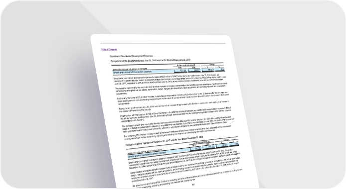 Table of Contents Growth and New Market Development Expenses Comparison of the Six Months Ended June 30, 2018 and the Six Months Ended June 30, 2019 Six Months Ended June 30, Change (Amounts in thousands, except percentages) 2018 2019 $ % Growth and new market development expenses $ 174,091 $ 369,727 $ 195,636 112% Growth and new market development expenses increased $195.6 million to $369.7 million for the six months ended June 30, 2019. Overall, our investment in growth and new market development related expenses as a percentage of total revenues increased by 1% to 24% for the six months ended June 30, 2019, compared to 23% for the six months ended June 30, 2018, as we continued to make investments in our future growth and expansion. The increase was primarily the result of a $107.9 million increase in employee compensation and benefits expenses driven by our investment in additional personnel to strengthen our real estate, construction, design, mergers and acquisitions, talent acquisitions, and technology research and development departments. Additionally, there was a $28.6 million increase in stock-based compensation including $19.3 million driven by the 2019 tender offer. We also made new stock-based grants to new and existing employees and the fair value of our capital stock increased, which also contributed to the increase in stock-based compensation. During the six months ended June 30, 2019, we also incurred an increase of approximately $54.5 million in construction costs relating to an increase in the number of Powered by We projects. In connection with the adoption of ASC 842 and the change in the definition of initial direct costs, we recorded additional expense in the amount of $13.8 million during the six months ended June 30, 2019 relating to legal costs associated with the drafting and negotiation of leases which are now expensed in accordance with ASC 842. The increase in growth and new market development expenses were also offset by a $62.9 million decline in fair value of the contingent consideration payable in stock associated with the naked Hub acquisition that was recorded during the six months ended June 30, 2019. The decline in fair value of our contingent consideration was primarily driven by a decline in our projected obligation to issue additional shares of our Class A Common Stock. The remaining $53.7 million increase related to increases in professional fees, travel costs and various other costs associated with our expansion in existing markets as well as researching, exploring and selecting new locations and developing new solutions and services. Comparison of the Year Ended December 31, 2017 and the Year Ended December 31, 2018 Year Ended December 31, Change (Amounts in thousands, except percentages) 2017 2018 $ % Growth and new market development expenses $ 109,719 $ 477,273 $ 367,554 335% Growth and new market development expenses increased $367.6 million to $477.3 million for the year ended December 31, 2018. Overall, our investment in growth and new market development related expenses as a percentage of total revenues increased by 14% to 26% for the year ended December 31, 2018, compared to 12% for the year ended December 31, 2017, as we continued to make investments in our future growth and expansion. Compensation and related benefits increased $110.8 million driven by our investment in additional personnel to strengthen our real estate, construction, design, mergers and acquisitions, talent acquisitions, and technology research and development departments. Stock-based compensation for these employees and stock issued to consultants for services rendered increased by $8.2 million in the year ended December 31, 2018 relative to the year ended December 31, 2017. We also incurred an additional $82.7 million in consulting and other professional fees and travel costs associated with our expansion in existing markets as well as researching, exploring and selecting new markets and developing new 104