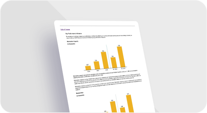 Table of Contents Key Performance Indicators To evaluate our business, measure our performance, identify trends affecting our business, formulate business plans and make strategic decisions, we rely on both our GAAP financial results and the following key performance measures. Workstation Capacity (in thousands) Workstation capacity represents the estimated number of workstations available at open WeWork locations. As of June 1, 2019 we had workstation capacity of 604,000, up 101% from 301,000 as of June 1, 2018. Workstation capacity is a key indicator of our scale and our capacity to sell memberships across our global platform. Our future capital expenditures and sales and marketing expenses will be a function of our efforts to increase workstation capacity. The cost at which we build out our workstations affects our capital expenditures, and the cost at which we acquire memberships and fill our workstations affects our sales and marketing expenses. Workstation capacity is presented in this prospectus rounded to the nearest thousand. Workstation capacity is based on management’s best estimates of capacity at a location based on our inventory management system and sales layouts and is not meant to represent the actual count of workstations at our locations. Memberships (in thousands) 67