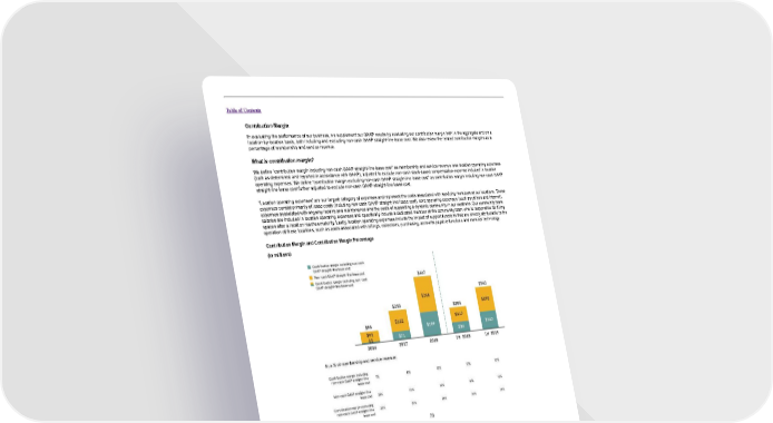 Table of Contents Contribution Margin In evaluating the performance of our business, we supplement our GAAP results by evaluating our contribution margin both in the aggregate and on a location-by-location basis, both including and excluding non-cash GAAP straight-line lease cost. We also review the related contribution margins as a percentage of membership and service revenue. What is contribution margin? We define “contribution margin including non-cash GAAP straight-line lease cost” as membership and service revenue less location operating expenses (both as determined and reported in accordance with GAAP), adjusted to exclude non-cash stock-based compensation expense included in location operating expenses. We define “contribution margin excluding non-cash GAAP straight-line lease cost” as contribution margin including non-cash GAAP straight-line lease cost further adjusted to exclude non-cash GAAP straight-line lease cost. “Location operating expenses” are our largest category of expenses and represent the costs associated with servicing members at our locations. These expenses consist primarily of lease costs (including non-cash GAAP straight-line lease cost), core operating expenses (such as utilities and internet), expenses associated with ongoing repairs and maintenance and the costs of supporting a dynamic community in our locations. Our community team salaries are included in location operating expenses and specifically include a dedicated member of the community team who is responsible for filling spaces after a location reaches maturity. Lastly, location operating expenses include the impact of support functions that are directly attributable to the operation of these locations, such as costs associated with billings, collections, purchasing, accounts payable functions and member technology. Contribution Margin and Contribution Margin Percentage (in millions) 70