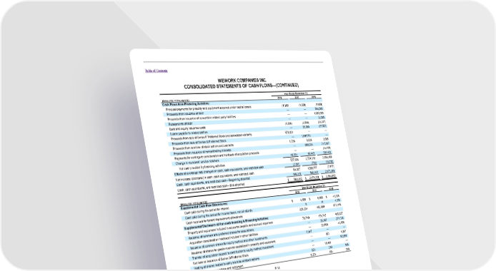Table of Contents WEWORK COMPANIES INC. CONSOLIDATED STATEMENTS OF CASH FLOWS—(CONTINUED) Year Ended December 31, (Amounts in thousands) 2016 2017 2018 Cash Flows from Financing Activities: Principal payments for property and equipment acquired under capital leases (1,116) (1,350) (1,869) Proceeds from issuance of debt — — 768,795 Proceeds from issuance of convertible related party liabilities — — 1,000,000 Repayments of debt — — (1,085) Debt and equity issuance costs (1,306) (3,568) (23,227) Loans payable to related parties — 26,088 (27,552) Proceeds from sale of Series F Preferred Stock and associated warrants 679,901 — — Proceeds from sale of Series G Preferred Stock — 1,697,761 — Proceeds from exercise of stock options and warrants 1,228 8,939 3,505 Proceeds from issuance of noncontrolling interests — 900,003 747,907 Payments for contingent consideration and holdback of acquisition proceeds — — (14,436) Change in members’ service retainers 49,201 96,442 206,431 Net cash provided by financing activities 727,908 2,724,315 2,658,469 Effects of exchange rate changes on cash, cash equivalents, and restricted cash (2,261) (763) (13,119) Net increase (decrease) in cash, cash equivalents, and restricted cash 84,027 1,590,777 (7,177) Cash, cash equivalents, and restricted cash—Beginning of period 496,315 580,342 2,171,119 Cash, cash equivalents, and restricted cash—End of period $ 580,342 $ 2,171,119 $ 2,163,942 Year Ended December 31, (Amounts in thousands) 2016 2017 2018 Supplemental Cash Flow Disclosures: Cash paid during the period for interest $ 4,656 $ 6,685 $ 41,326 Cash paid during the period for income taxes, net of refunds 8 11 4,376 Cash received for tenant improvement allowances 325,294 452,090 673,415 Supplemental Disclosure of Non-cash Investing & Financing Activities: Property and equipment included in accounts payable and accrued expenses 76,740 174,747 485,037 Issuance of common and preferred shares for acquisitions — 23,367 274,118 Acquisition consideration holdback included in other liabilities — 22,189 43,156 Issuance of common shares for equity method and other investments 1,147 — — Issuance of shares for goods received capitalized in property and equipment — 901 1,087 Transfer of acquisition deposit to contribution to equity method investment — — 52,858 Net loss on issuance of Series G Preferred Stock — 16,481 — Vesting of shares related to early exercise of stock options 573 210 105 Common share repurchase and retirement 6,374 454 289 F-11