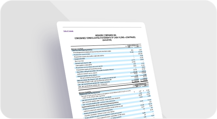 Table of Contents WEWORK COMPANIES INC. CONDENSED CONSOLIDATED STATEMENTS OF CASH FLOWS—(CONTINUED) (UNAUDITED) Six Months Ended June 30, (Amounts in thousands) 2018 2019 Cash Flows from Financing Activities: Principal payments for property and equipment acquired under finance leases (913) (1,646) Proceeds from issuance of debt 702,000 633,309 Proceeds from issuance of convertible related party liabilities — 2,500,000 Repayments of debt — (1,339) Bond repurchase — (32,352) Debt and equity issuance costs (14,744) (35,508) Loans payable to related parties (27,552) — Proceeds from exercise of stock options and warrants 1,468 34,293 Proceeds from issuance of noncontrolling interests (2,804) 243,483 Payments for contingent consideration and holdback of acquisition proceeds — (11,623) Additions to members’ service retainers 230,795 337,384 Refunds of members’ service retainers (142,456) (235,743) Net cash provided by financing activities 745,794 3,430,258 Effects of exchange rate changes on cash, cash equivalents and restricted cash 2,726 15,956 Net increase (decrease) in cash, cash equivalents and restricted cash (224,016) 884,730 Cash, cash equivalents and restricted cash—Beginning of period 2,171,119 2,163,942 Cash, cash equivalents and restricted cash—End of period $ 1,947,103 $ 3,048,672 Six Months Ended June 30, (Amounts in thousands) 2018 2019 Supplemental Cash Flow Disclosures: Cash paid during the period for interest (net of capitalized interest of $0 and $4,891 during the six months ended June 30, 2018 and 2019, respectively) $ 4,827 $ 37,460 Cash paid during the period for income taxes, net of refunds 2,128 9,317 Cash received for operating lease incentives—tenant improvement allowances 251,957 454,769 Cash received for operating lease incentives—broker commissions 13,620 31,186 Supplemental Disclosure of Non-cash Investing & Financing Activities: Property and equipment included in accounts payable and accrued expenses 312,061 774,681 Additions to property and equipment from amortization of deferred financing costs — 2,834 Issuance of common and preferred shares for acquisitions 271,208 160,478 Acquisition consideration holdback included in other liabilities 34,847 64,000 Issuance of shares for goods received capitalized in property and equipment 439 624 Conversion of equity method investment to equity in consolidated 424 Fifth Venture — 50,000 Transfer of acquisition deposit to contribution to equity method investment 52,858 — Vesting of shares related to early exercise of stock options 104 — Debt and equity issuance costs included in other liabilities 2,692 11,723 Common share repurchase and retirement 161 — Non-cash capitalized interest — 12,826 F-73
