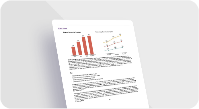 Table of Contents Enterprise Membership Percentage Occupancy by Year of Location Opening Our ability to monetize our growing platform depends on our ability to grow our membership base. Over time, our sales and marketing efforts have become more efficient and we have been improving the speed at which we fill our locations, as we are increasingly targeting enterprises who typically sign membership agreements with longer-term commitments. Enterprises often use third-party brokers to help them manage their real estate needs. As we intend to further grow our enterprise membership base, we expect to continue making use of third-party brokers to help us attract new enterprise members, and we expect that sales and marketing expenses associated with broker referral fees may grow in line with these efforts. Our enterprise membership percentage increased from 28% as of December 31, 2017 to 40% as of June 30, 2019. We also expect the use of discounts to help drive initial occupancy and longer-term commitments, which we expect will have a significant impact on our financial performance. Run • 180,000 workstations (10% of total) as of June 1, 2019 • Location matures and occupancy has stabilized (24+ months) • Revenue and contribution margin are generated • Limited capital expenditures incurred related to new floor openings Once a location has been open to members for more than 24 months, which we define as a mature location, occupancy is generally stable, our initial investment in build-out and sales and marketing to drive member acquisition is complete and the location typically generates a recurring stream of revenues, contribution margin and cash flow and is representative of our “steady-state” performance. As of June 1, 2019, our occupancy stabilized at an average of approximately 89% after 18 months and generally remained at that level after 24 months, and mature locations comprised 30% of our total fleet of open locations. At this phase, the community team, which includes a dedicated sales lead at each of our locations, is primarily responsible for maintaining occupancy in our locations, which reduces our reliance on our centralized sales and marketing teams. The community team strives to foster a positive and engaging experience for our members, which we believe drives our high membership retention rates across our member community. The chart below demonstrates our net membership retention rate, which measures the net impact of members who added or canceled WeWork memberships during a given period. For members that had joined our community as of December 1, 2017, our net membership retention rate in the period from December 1, 2017 to December 1, 2018 was 119%. 83