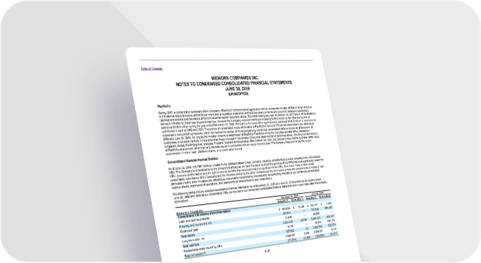 Table of Contents WEWORK COMPANIES INC. NOTES TO CONDENSED CONSOLIDATED FINANCIAL STATEMENTS JUNE 30, 2019 (UNAUDITED) PacificCo During 2017, a consolidated subsidiary of the Company (“PacificCo”) entered into an agreement with an investor for the sale of $500.0 million of Series A-1 Preferred Stock at a price of $10.00 per share and a liquidation preference of $10.00 per share on terms and subject to conditions substantially identical to the terms and conditions of the ChinaCo transaction described above. The initial closing occurred on October 30, 2017 and all of the PacificCo Series A-1 Preferred Stock was issued at that time, however the Company received contributions totaling $200.0 million at the initial closing and an additional $100.0 million during the year ended December 31, 2018. Pursuant to the terms of the agreement an additional $100.0 million is required to be contributed in each of 2019 and 2020. The portion of consolidated equity attributable to PacificCo’s Series A-1 Preferred shareholders are reflected as redeemable noncontrolling interests, within the mezzanine section of the accompanying condensed consolidated balance sheets as of December 31, 2018 and June 30, 2019. As long as the investor remains a shareholder of PacificCo, PacificCo will be the exclusive operator of the Company’s businesses in selected markets in Asia other than those included in the Greater China and Japan territories described above, including but not limited to Singapore, Korea, the Philippines, Malaysia, Thailand, Vietnam and Indonesia. After October 30, 2024, the Company may elect to purchase, at fair value, all PacificCo shares held, other than any interests issued in connection with an equity incentive plan. The Company may elect to pay the buyout consideration in either cash, WeWork shares, or a combination thereof. Consolidated Variable Interest Entities As of June 30, 2019, 424 Fifth Venture, Creator Fund, WeWork Waller Creek, ChinaCo, JapanCo, and PacificCo are the Company’s only consolidated VIEs. The Company is considered to be the primary beneficiary as we have the power to direct the activities of the VIEs that most significantly impact the VIEs’ economic performance and the right to receive benefits that could potentially be significant to the VIEs. As a result, these entities remain consolidated subsidiaries of the Company and the interests owned by the other investors and the net income or loss and comprehensive income or loss attributable to the other investors are reflected as redeemable noncontrolling interests and noncontrolling interests on our condensed consolidated balance sheets, statements of operations, and statements of comprehensive loss, respectively. The following tables include selected consolidated financial information as of December 31, 2018 and June 30, 2019 and for the six months ended June 30, 2018 and 2019 of our consolidated VIEs, as included in our condensed consolidated financial statements and in each case, after intercompany eliminations. December 31, 2018 June 30, 2019 (1) (2) (1) (2) (Amounts in thousands) Asia JVs Other VIEs Asia JVs Other VIEs Consolidated VIE balance sheet information: Cash and cash equivalents $ 813,818 $ 12,210 $ 531,147 $ 4,682 Property and equipment, net 491,801 — 722,840 904,052 Restricted cash 74,846 — 96,656 — Total assets 2,023,329 46,549 5,162,422 963,437 Long-term debt, net 9,795 — 29,048 607,214 Total liabilities 597,685 83 3,801,770 623,274 Redeemable stock issued by VIEs 1,599,157 3,160 1,599,157 6,446 (3) Total net assets (173,513) 43,306 (238,505) 333,717 F-97