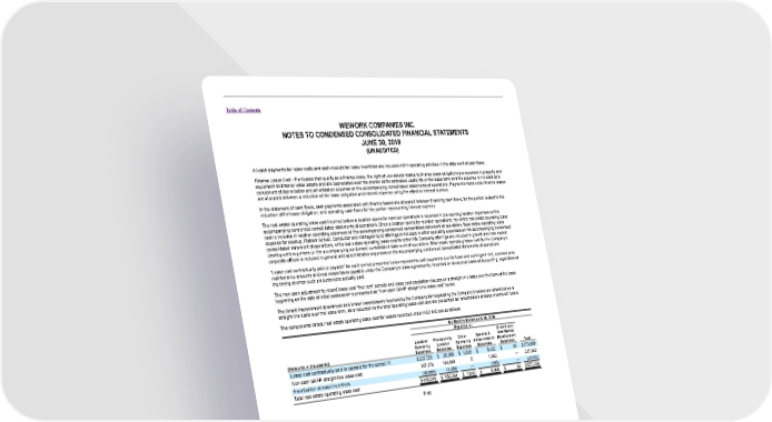 Table of Contents WEWORK COMPANIES INC. NOTES TO CONDENSED CONSOLIDATED FINANCIAL STATEMENTS JUNE 30, 2019 (UNAUDITED) All cash payments for lease costs and cash receipts for lease incentives are included within operating activities in the statement of cash flows. Finance Lease Cost—For leases that qualify as a finance lease, the right-of-use assets related to finance lease obligations are recorded in property and equipment as finance lease assets and are depreciated over the shorter of the estimated useful life or the lease term and the expense is included as a component of depreciation and amortization expense on the accompanying consolidated statements of operations. Payments made under finance leases are allocated between a reduction of the lease obligation and interest expense using the effective interest method. In the statement of cash flows, cash payments associated with finance leases are allocated between financing cash flows, for the portion related to the reduction of the lease obligation, and operating cash flows for the portion representing interest expense. The real estate operating lease cost incurred before a location opens for member operations is recorded in pre-opening location expenses on the accompanying condensed consolidated statements of operations. Once a location opens for member operations, the entire real estate operating lease cost is included in location operating expenses on the accompanying condensed consolidated statement of operations. Real estate operating lease expense for Meetup, Flatiron School, Conductor and Managed by Q offerings is included in other operating expenses on the accompanying condensed consolidated statement of operations, while real estate operating lease cost for other We Company offerings are included in growth and new market development expenses on the accompanying condensed consolidated statement of operations. Real estate operating lease cost for the Company’s corporate offices is included in general and administrative expenses on the accompanying condensed consolidated statements of operations. “Lease cost contractually paid or payable” for each period presented below represents cash payments due for base and contingent rent, common area maintenance amounts and real estate taxes payable under the Company’s lease agreements, recorded on an accrual basis of accounting, regardless of the timing of when such amounts were actually paid. The non-cash adjustment to record lease cost “free rent” periods and lease cost escalation clauses on a straight-line basis over the term of the lease beginning on the date of initial possession is presented as “Non-cash GAAP straight-line lease cost” below. The tenant improvement allowances and broker commissions received by the Company for negotiating the Company’s leases are amortized on a straight-line basis over the lease term, as a reduction to the total operating lease cost and are presented as “amortization of lease incentives” below. The components of total real estate operating lease cost for leases recorded under ASC 840 are as follows: Six Months Ended June 30, 2018 Reported in: Growth and Location Pre-opening Other General & New Market Operating Location Operating Administrative Development (Amounts in thousands) Expenses Expenses Expenses Expenses Expenses Total (1) Lease cost contractually paid or payable for the period $337,729 $ 35,068 $ 1,835 $ 5,183 $ 84 $379,899 Non-cash GAAP straight-line lease cost 117,178 119,699 5 1,080 — 237,962 Amortization of lease incentives (38,891) (1,476) — (265) — (40,632) Total real estate operating lease cost $416,016 $ 153,291 $ 1,840 $ 5,998 $ 84 $577,229 F-90