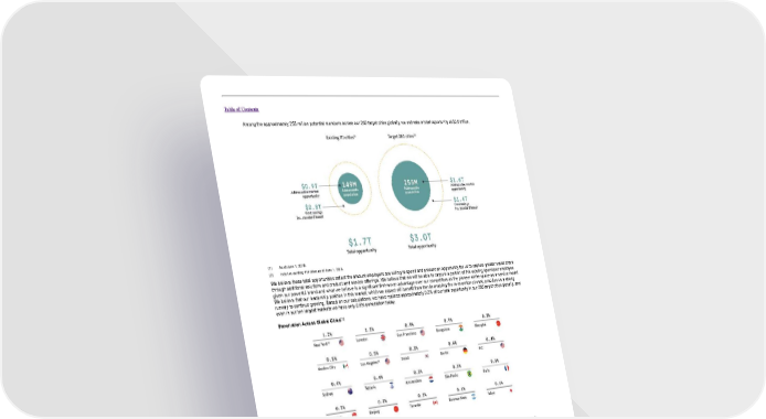 Table of Contents Among the approximately 255 million potential members across our 280 target cities globally, we estimate a total opportunity of $3.0 trillion. (1) As of June 1, 2019. (2) Includes existing 111 cities as of June 1, 2019. We believe these total opportunities reflect the amount employers are willing to spend and present an opportunity for us to capture greater wallet share through additional solutions and product and service offerings. We believe that we will be able to capture a portion of this existing spend per employee given our powerful brand and what we believe is a significant first-mover advantage over our competitors as the pioneer of the space-as-a-service model. We believe that our leadership position in this market, which we expect will benefit from trends enabling the re-invention of work, provides us a strong runway to continue growing. Based on our calculations, we have realized approximately 0.2% of our total opportunity in our 280 target cities globally, and even in our ten largest markets we have only 0.6% penetration today. (1) Penetration Across Global Cities (1) Based on our memberships divided by our total addressable market in a given city as of June 1, 2019. (2) New York market includes memberships in New York City, Brooklyn, Manhattan, Astoria and Long Island City. (3) Los Angeles market includes memberships in Los Angeles, Santa Monica, West Hollywood, Burbank, Playa Vista, Culver City, Pasadena, Costa Mesa, Long Beach and El Segundo. 135