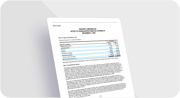 Table of Contents WEWORK COMPANIES INC. NOTES TO CONSOLIDATED FINANCIAL STATEMENTS DECEMBER 31, 2018 Note 4. Property and Equipment, Net Property and equipment, net, consists of the following: December 31, (Amounts in thousands) 2017 2018 Leasehold improvements $ 1,908,673 $ 3,562,651 Capital lease assets 43,710 44,443 Equipment 170,469 371,455 Furniture 225,453 423,346 Construction in progress 280,851 538,384 Property and equipment 2,629,156 4,940,279 Less: accumulated depreciation (292,064) (571,507) Total Property and equipment, net $ 2,337,092 $ 4,368,772 Depreciation expense for the years ended December 31, 2016, 2017, and 2018 was $86.4 million, $156.6 million, and $284.1 million, respectively. Note 5. Noncontrolling Interests During 2018, the Company launched a fund (the “Creator Fund”) that will make investments in recipients of WeWork’s “Creator Awards” and other investments through use of a venture capital strategy. A wholly-owned subsidiary of the Company is the managing member of the Creator Fund. As of December 31, 2018, the Creator Fund had received contributions from Softbank Group Capital Limited totaling $44.7 million, representing 99.99% of the interest of the Creator Fund. An affiliate of Softbank Group Capital Limited is a principal stockholder with representation on the Company’s board of directors. During 2018, the Creator Fund purchased certain investments that had been previously warehoused by WeWork on behalf of the Creator Fund for $12.1 million, as a result of these purchases, the Company recognized a $1.2 million increase to additional paid in capital, which represents the difference between the cash received and the carrying value of the investments transferred. See Note 9 for additional details of investments acquired by the Creator Fund. The portion of consolidated equity attributable to the interest of the Creator Fund’s investors in the Creator Fund is reflected as noncontrolling interests, within the equity section of the accompanying consolidated balance sheet as of December 31, 2018. During 2018, the Company formed a 50% owned and consolidated joint venture entity (“WeWork Waller Creek”) to facilitate an investment in an unconsolidated joint venture (“Waller Creek”) that acquired a parcel of land in Texas. See Note 9 for additional details. The Company is the managing member of WeWork Waller Creek, which owns 5% of Waller Creek. As of December 31, 2018, the Company and the other WeWork Waller Creek investor have each funded $3.2 million related to the closing of the land purchase. The portion of the consolidated equity attributable to the interest of WeWork Waller Creek’s other investor is reflected as a redeemable noncontrolling interest, within the mezzanine section of the accompanying consolidated balance sheet as of December 31, 2018. During 2018, a consolidated subsidiary of the Company (“ChinaCo”) sold to investors $500.0 million of Series B Preferred Stock at a price of $18.319 per share and a liquidation preference of $18.319 per share. During 2017, ChinaCo sold to investors $500.0 million of Series A Preferred Stock at a price of $10.00 per share and a liquidation preference of $10.00 per share. The portion of consolidated equity attributable to ChinaCo’s Series A and B Preferred shareholders are reflected as redeemable noncontrolling interests, within the mezzanine section of the accompanying consolidated balance sheets as of December 31, 2017 and 2018. See Note 6 for a discussion of the Class A Ordinary shares issued during 2018 by ChinaCo in connection with an acquisition. There were no Class A Ordinary shares F-26