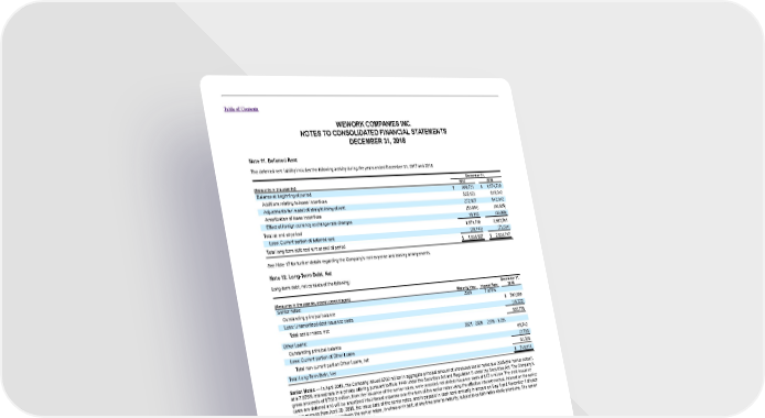 Table of Contents WEWORK COMPANIES INC. NOTES TO CONSOLIDATED FINANCIAL STATEMENTS DECEMBER 31, 2018 Note 11. Deferred Rent The deferred rent liability includes the following activity during the years ended December 31, 2017 and 2018: December 31, (Amounts in thousands) 2017 2018 Balance at beginning of period $ 900,731 $ 1,674,730 Additions relating to lease incentives 535,123 819,042 Adjustments for impact of straight-lining of rent 272,927 542,842 Amortization of lease incentives (53,864) (93,835) Effect of foreign currency exchange rate changes 19,813 (39,998) Total at end of period 1,674,730 2,902,781 Less: Current portion of deferred rent (38,143) (71,034) Total long-term deferred rent at end of period $ 1,636,587 $ 2,831,747 See Note 17 for further details regarding the Company’s rent expense and leasing arrangements. Note 12. Long-Term Debt, Net Long-term debt, net consists of the following: December 31, (Amounts in thousands, except percentages) Maturity Year Interest Rate 2018 Senior notes: 2025 7.875% Outstanding principal balance $ 702,000 Less: Unamortized debt issuance costs (16,222) Total senior notes, net 685,778 Other Loans: 2021 - 2026 2.5% - 6.2% Outstanding principal balance 65,742 Less: Current portion of Other Loans (2,706) Total non-current portion Other Loans, net 63,036 Total Long-Term Debt, Net $ 748,814 Senior Notes — In April 2018, the Company issued $702 million in aggregate principal amount of unsecured senior notes due 2025 (the “senior notes”) at a 7.875% interest rate in a private offering pursuant to Rule 144A under the Securities Act and Regulation S under the Securities Act. The Company’s gross proceeds of $702.0 million, from the issuance of the senior notes, were recorded net of debt issuance costs of $17.4 million. The debt issuance costs are deferred and will be amortized into interest expense over the term of the senior notes using the effective interest method. Interest on the senior notes accrues from April 30, 2018, the issue date of the senior notes, and is payable in cash semi-annually in arrears on May 1 and November 1 of each year. The Company may redeem the senior notes, in whole or in part, at any time prior to maturity, subject to certain make-whole premiums. The senior notes mature on May 1, 2025 at 100% of par. F-35