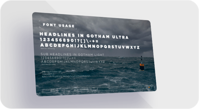 FONT US FONT USAAGEGE HEADLINES IN GOHEADLINES IN GOTHAM ULTHAM ULTRTRAA 1231234568456890!?[]\-+=90!?[]\-+= ABCDEFGHIJKLMNOPQRSABCDEFGHIJKLMNOPQRSTUVTUVWWXXYYZZ Uppercase, +300 kerning SUB HEADLINES IN GOSUB HEADLINES IN GOTHAM LIGHTTHAM LIGHT 1234568123456890!?[]\-+=90!?[]\-+= ABCDEFABCDEFGHIJKLMNOPQRSGHIJKLMNOPQRSTUVTUVWWXXYYZZ Uppercase, +250 kerning Body copy in Roboto Light 123456890!?\-+= AaBbCcDdEeFfGgHhIiJjKkLlMmNnOoPpQqRrSsTtUuVvWwXxYyZz BRAND EXPRESSION FONT USAGE 04.03.2022 15
