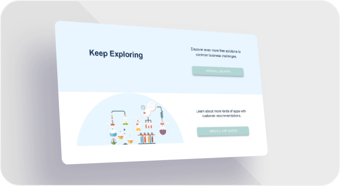 Discover even more free solutions to common business challenges. Keep Exploring VIEW ALL LAB APPS Learn about more kinds of apps with customer recommendations. VIEW ALL APP GUIDES