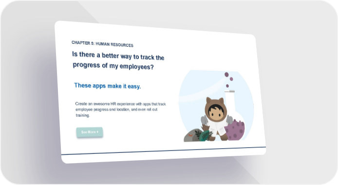 CHAPTER 5: HUMAN RESOURCES Is there a better way to track the progress of my employees? These apps make it easy. Create an awesome HR experience with apps that track employee progress and location, and even roll out training. See More +