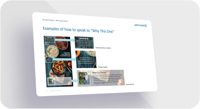 Sam's Club Brand Book Page 26 Page 28Our Brand Promise | What Special Means 28 Testimonial from member Sourcing story Product quality Examples of how to speak to “Why This One” BRAND GUIDELINES