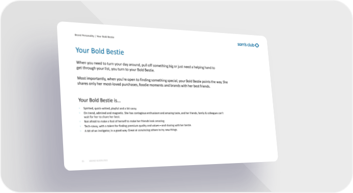 Brand Personality | Your Bold Bestie 35 When you need to turn your day around, pull off something big or just need a helping hand to get through your list, you turn to your Bold Bestie. Most importantly, when you’re open to finding something special, your Bold Bestie points the way. She shares only her most - loved purchases, foodie moments and brands with her best friends. • Spirited, quick - witted, playful and a bit sassy. • On trend, admired and magnetic. She has contagious enthusiasm and amazing taste, and her friends, family & colleagues can’t wait for her to share her best. • Not afraid to make a fool of herself to make her friends look amazing. • Tech - savvy, with a talent for finding premium quality and values — and sharing with her bestie. • A bit of an instigator, in a good way. Great at convincing others to try new things. Your Bold Bestie is... Your Bold Bestie BRAND GUIDELINES