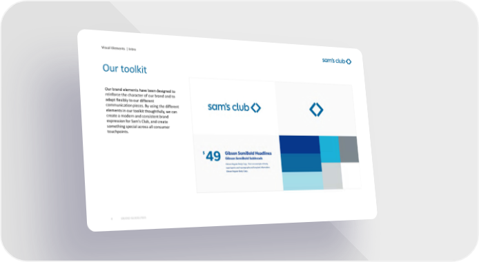 Visual Elements | Intro BRAND GUIDELINES 4 Our brand elements have been designed to reinforce the character of our brand and to adapt flexibly to our different communication pieces. By using the different elements in our toolkit thoughtfully, we can create a modern and consistent brand expression for Sam’s Club, and create something special across all consumer touchpoints. Our toolkit