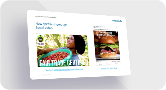 Sam's Club Brand Book Page 29 Page 31Our Brand Promise | What Special Means 31 Summer Yum Hacks video Member's Mark Donut Shop Fair Trade Coffee video BRAND GUIDELINES How special shows up: Social video