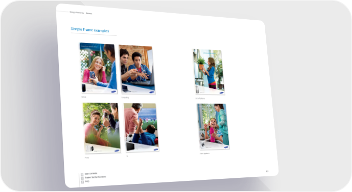 Samsung Brand Book Page 59 Page 61Simple Frame examples Mobile Home Appliance Computing Photo TV Home Appliance 121 Frames | Design Elements