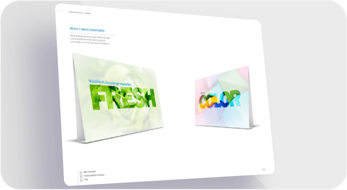 Word Frame examples Word Frames work very well in Point of Sale communications that need to quickly and boldly communicate product features. 129 Frames | Design Elements