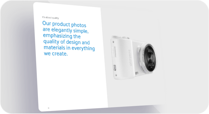Samsung Brand Book Page 37 Page 3977 76 It’s about quality Our product photos are elegantly simple, emphasizing the quality of design and materials in everything we create.