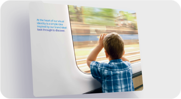 6 7 At the heart of our visual identity is a simple idea inspired by our brand ideal: look through to discover.