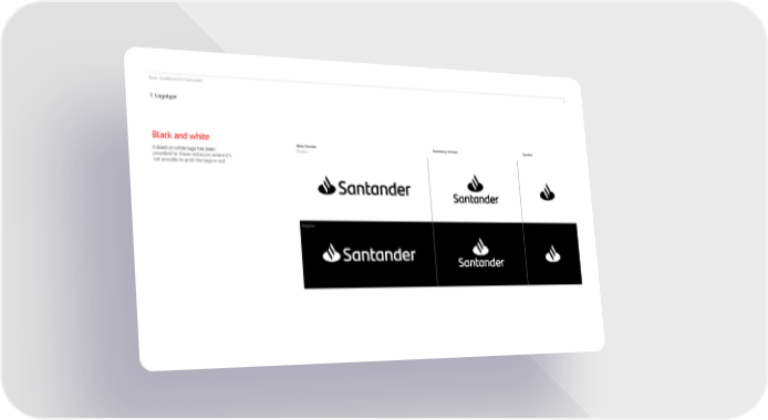 Basic Guidelines for Santander 7 Black and white A black or white logo has been provided for those instances where it’s not possible to print the logo in red. 1. Logot ype Main Version Positive Symbol Secondary Version Negative