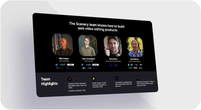 Sceneryhttps://www.businessinsider.com/pitch-deck-video-editing-startup-scenery-raise-vc-funding-2022-6?r=US&IR=T Page 1Page 2Page 3Page 4Page 5Page 6Page 7Page 8Page 9Page 10Page 11