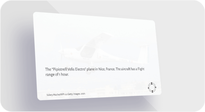 The “Pipistrell Velis Electro” plane in Nice, France. The aircraft has a flight range of 1 hour. Valery Hache/AFP via Getty Images. 2021.