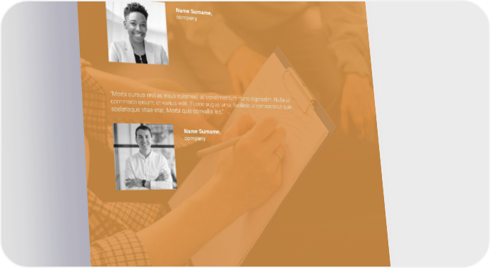 Testimonials “Morbi cursus orci ac risus euismod, at condimentum nunc dignissim. Nulla ut commodo ipsum, et varius velit. Fusce augue urna, facilisis ut consectetur quis, scelerisque vitae erat. Morbi quis convallis leo.” Name Surname, company “Morbi cursus orci ac risus euismod, at condimentum nunc dignissim. Nulla ut commodo ipsum, et varius velit. Fusce augue urna, facilisis ut consectetur quis, scelerisque vitae erat. Morbi quis convallis leo.” Name Surname, company