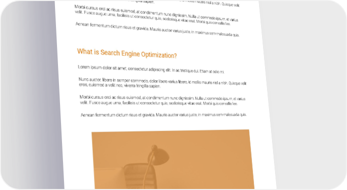 Introduction Lorem ipsum dolor sit amet, consectetur adipiscing elit. In ac tristique dui. Etiam at odio mi. Nunc auctor, libero in semper commodo, dolor libero varius libero, id mollis mauris nisl a nibh. Quisque velit eros, euismod a velit nec, viverra fringilla sapien. Morbi cursus orci ac risus euismod, at condimentum nunc dignissim. Nulla ut commodo ipsum, et varius velit. Fusce augue urna, facilisis ut consectetur quis, scelerisque vitae erat. Morbi quis convallis leo. Aenean fermentum dictum risus et gravida. Mauris auctor varius justo, in maximus sem malesuada quis. What is Search Engine Optimization? Lorem ipsum dolor sit amet, consectetur adipiscing elit. In ac tristique dui. Etiam at odio mi. Nunc auctor, libero in semper commodo, dolor libero varius libero, id mollis mauris nisl a nibh. Quisque velit eros, euismod a velit nec, viverra fringilla sapien. Morbi cursus orci ac risus euismod, at condimentum nunc dignissim. Nulla ut commodo ipsum, et varius velit. Fusce augue urna, facilisis ut consectetur quis, scelerisque vitae erat. Morbi quis convallis leo. Aenean fermentum dictum risus et gravida. Mauris auctor varius justo, in maximus sem malesuada quis.